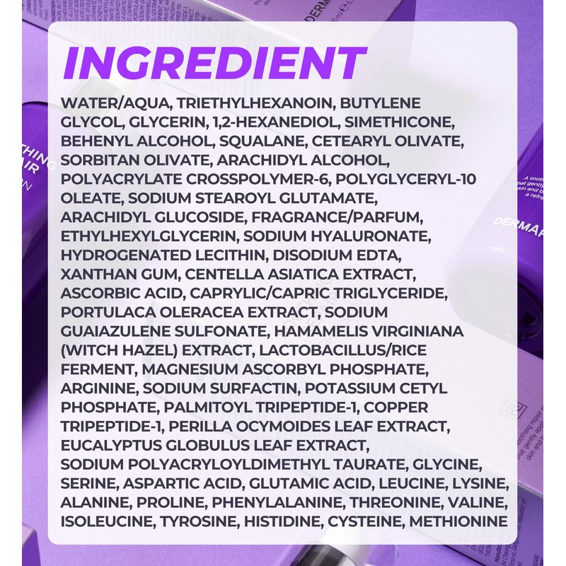 - REPLENISH AND NOURISH YOUR SKIN. DERMAFIRM Soothing Repair Emulsion Skincare R4 delivers swift relief to stressed skin. Infused with natural botanicals such as Eucalyptus and Perilla Leaf, it rapidly calms and firms irritated skin, combating the effects of pollution, mask wear, and intense sunlight for a soothing sensation.