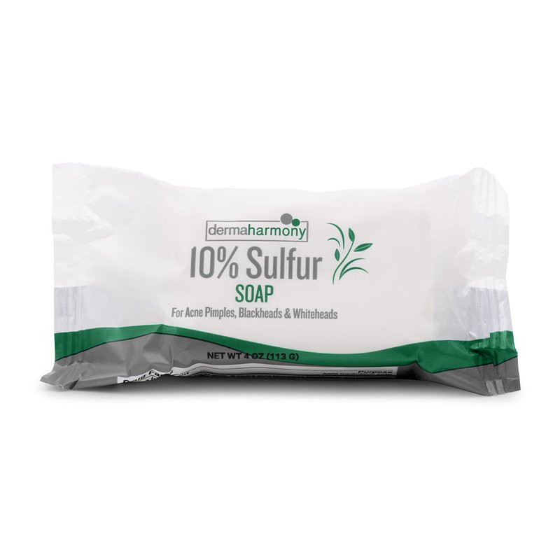 Dermaharmony 10% Sulfur Acne Bar Soap with Tea Tree Oil dries and clears acne blemishes, acne pimples, blackheads, and/or whiteheads and allows skin to heal. It penetrates pores to eliminate most acne blemishes, blackheads, and whiteheads and helps the skin clear new acne blemishes. Our soap also helps prevent the development of new acne blemishes, acne pimples, whiteheads, and blackheads.