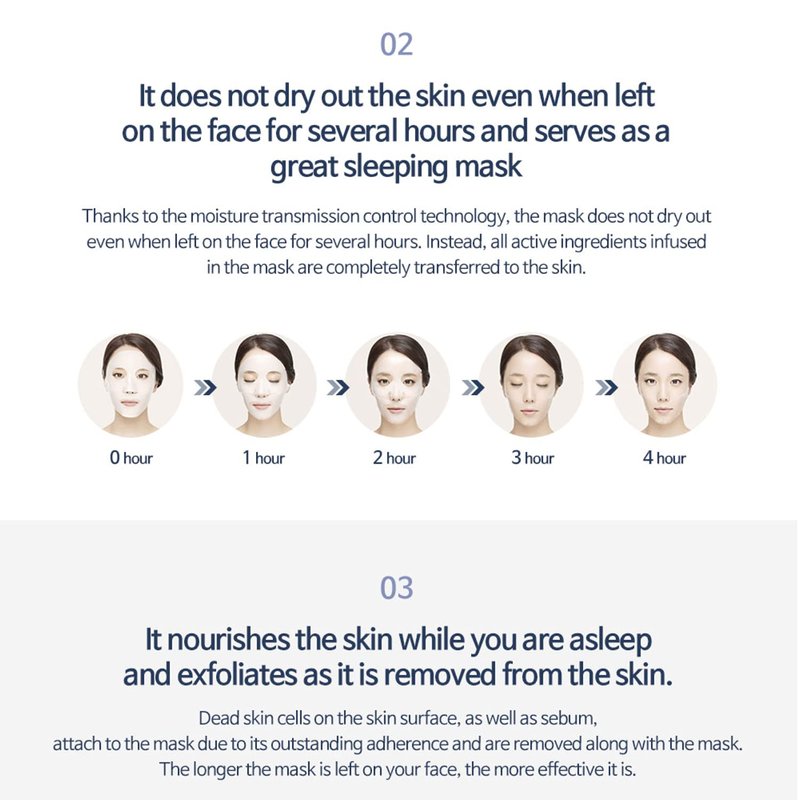 - [Replenishes moisture] Replenishes moisture when sleeping, exfoliates when removed with the mask sleeping pack. Thanks to its excellent adhesion to the skin, it can dead skin cells and sebum when removed after use with just one Facial mask Pack.