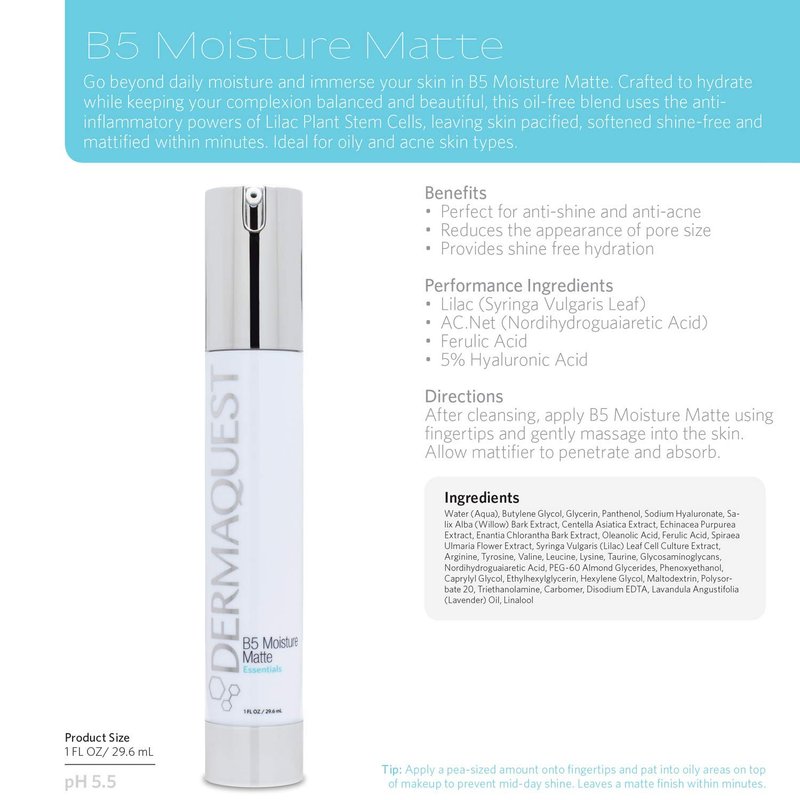 DermaQuest Essential B5 Moisture Matte - Face Moisturizer for Oily & Acne Prone Skin - 5% Hyaluronic Acid Women & Mens Moisturizer - Reduces Oil & Shine Instantly (1oz)