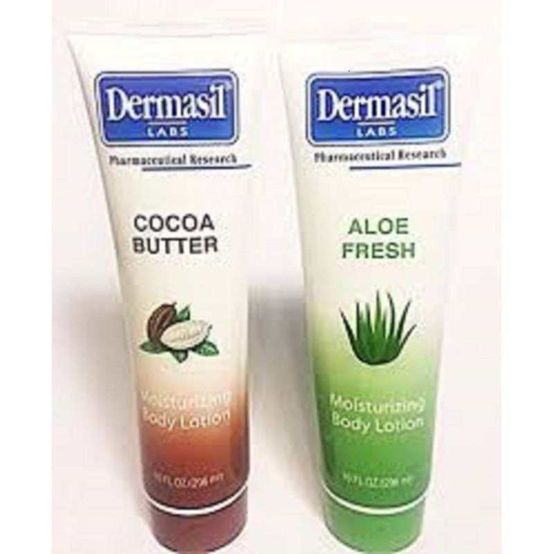 DERMASIL MOISTURIZING BODY LOTION BUNDLE: 2 10 oz. tubes. 1 Coco Butter and 1 Aloe Fresh.