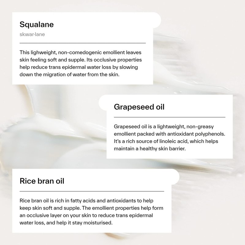 - The formula contains squalane for hydration and grapeseed and rice bran oils to remove all traces of makeup, dirt and SPF.