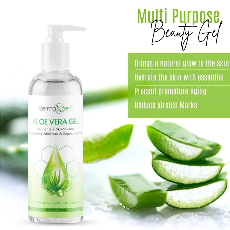 - CONDITIONER FOR HAIR AND SCALP: Dermaxgen Aloe Vera Gel has moisturizing properties & also it has hair conditioning properties that make the hair soft and silky. Regular application of our Aloe vera gel to your hair and scalp will help maintain the shine and vitality of your hair. Keep moisture in your hair and smoothen the hair. Applying Aloe vera every fortnight will make your hair smooth, thick and bouncy!