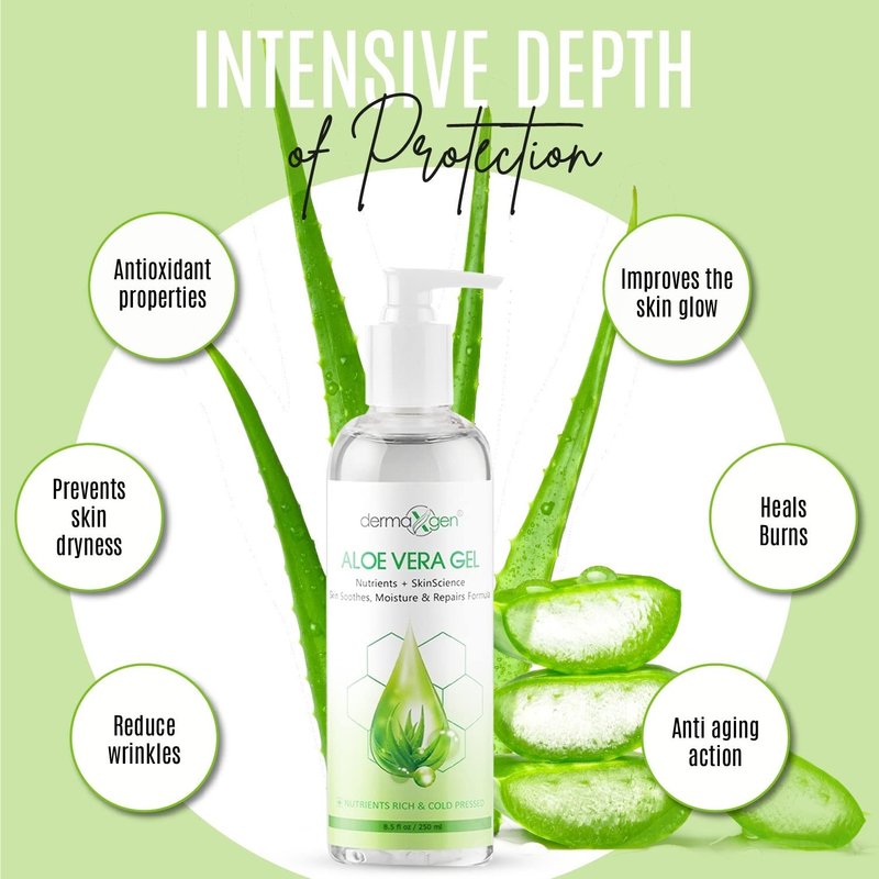 Dermaxgen ALOE VERA GEL WITH WITCH HAZEL + VITAMIN C + VITAMIN E -SKIN SOOTHES, MOISTURE AND REPAIR FORMULA, NUTRIENTS RICH AND COLD PRESSED 8.5 FL OZ/ 250 ML REDUCES SIGNS OF AGING: