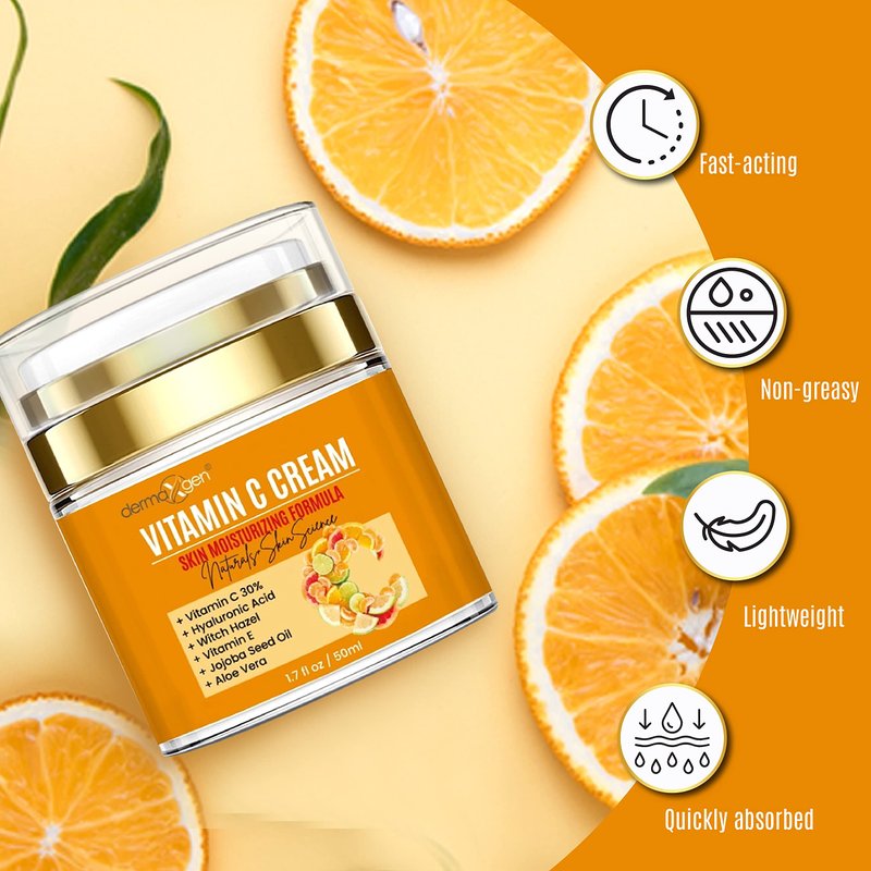 DERMAXGEN Vitamin C Moisturizing Cream - Organic Glowing Skin Anti-Aging, Rejuvenating, Boosting Collagen Hydrating for Dull, Dry & Sensitive & Oily Skin - 1.7 FL OZ.