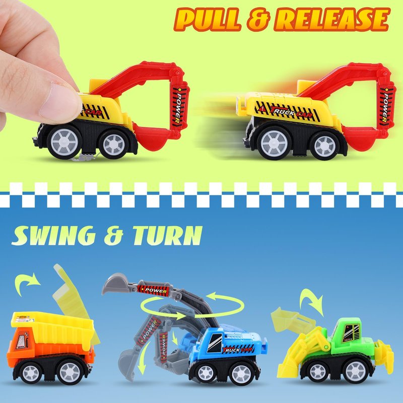 - Easy to play: the mini toy vehicles have no batteries, just pull back gently and have fun, kids can play anytime and anywhere, and the kids toy cars are designed with smooth edges and are free from any sharp parts, ensuring a worry-free play experience