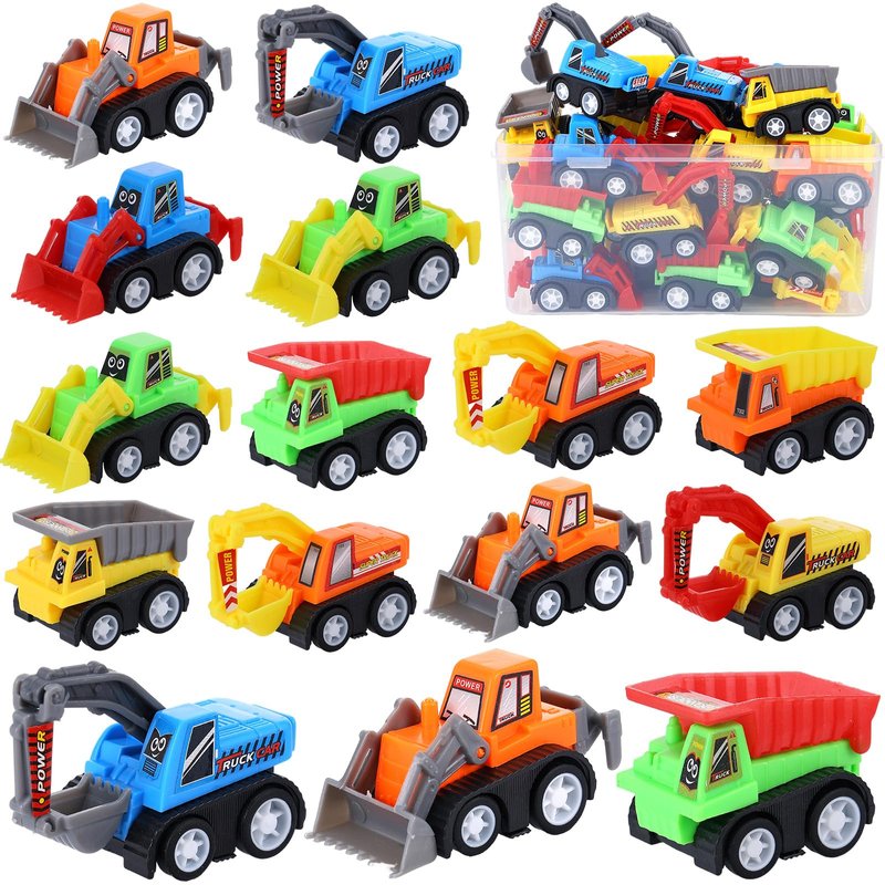 - Product information: these construction toy cars are made of high-quality ABS materials that are safe for children; the pull back vehicles measure about 2.4 x 1.3 inch, small size is suitable for kid's little hand