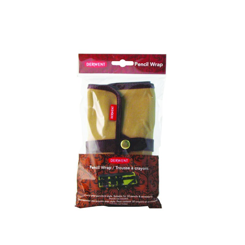 Lightweight, well-made Derwent tan canvas roll is secured with dark brown faux leather ties Holds up to 30 of your favorite drawing pencils and an eraser Small enough to fit into a backpack, portfolio or purse 17.75L when open x 7.5H Pencils and accessories not included