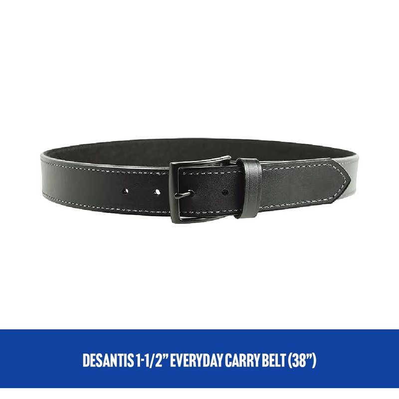 DeSantis 1 1/2” Everyday Carry Belt (EDC), Powder Coated Buckle Closure, Premium Leather Belt, Made of Leather and Other Synthetic Materials, 3.5mm Thick, Black, 38”