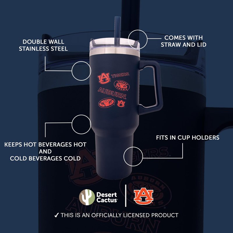 Desert Cactus Auburn University Tigers War Eagle Large Insulated Stainless Steel with Handle Lid and Straw Reusable Double Walled Cup Hot and Cold Drinkware Laser Etched (40oz Ounce Rally Tumbler)