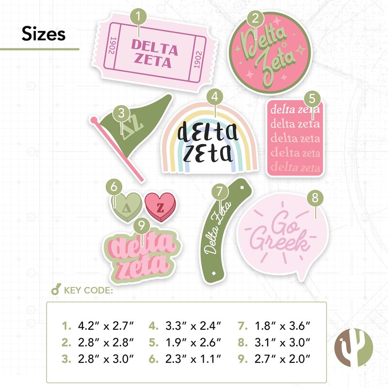 Desert Cactus Delta Zeta Sticker Decal Laptop Water Bottle Car (Cute Sheet)