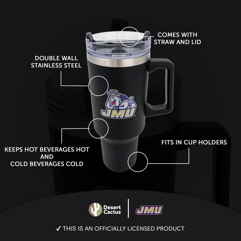 Desert Cactus James Madison University Dukes JMU Large Insulated Stainless Steel with Handle Lid Straw Reusable Double Walled Cup Hot Cold Drinkware Laser Etched (40oz Ounce Rally Tumbler Design C)