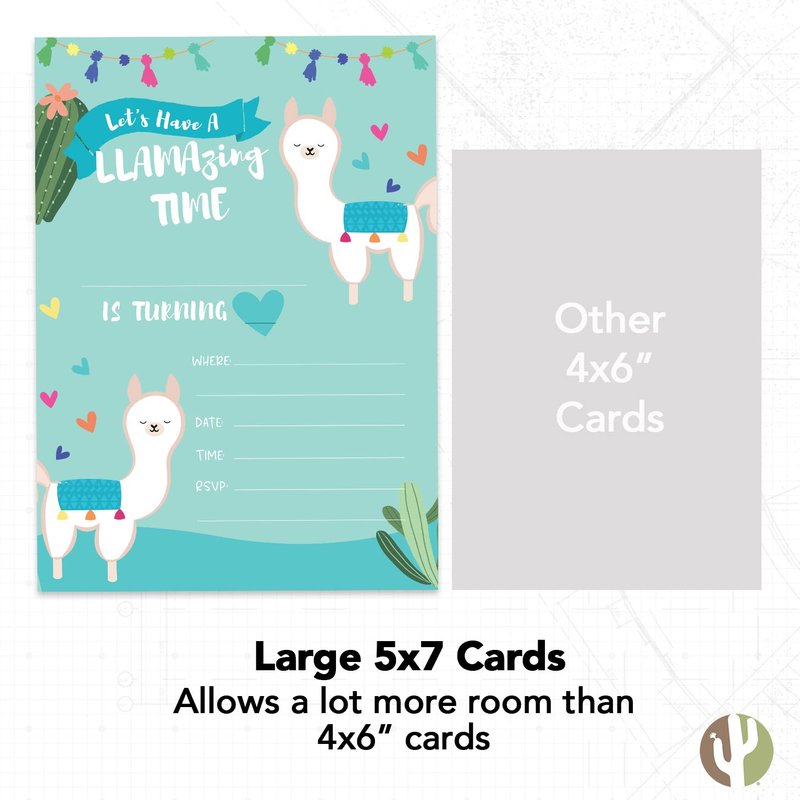- 5 x 7 - Don’t be fooled by small invitation sizes. Our invitations measure 5 inches wide x 7 inches tall. Printed on a premium 14 point cardstock, these invitations are uncoated, so it’s easy for you to write on them. All invitations feature a design on both sides.