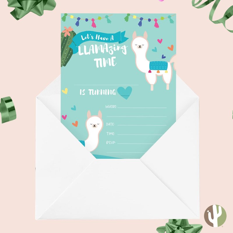 Desert Cactus Llama 3 (1) Happy Birthday Invitations Invite Cards (10 Count) With Envelopes Boys Girls Kids Party (10ct)