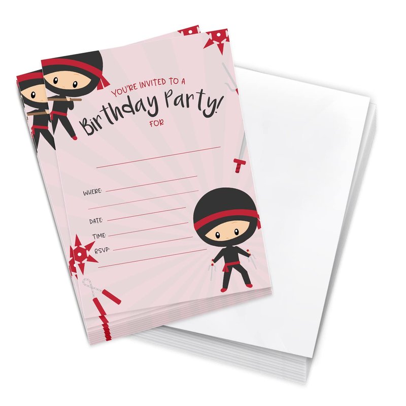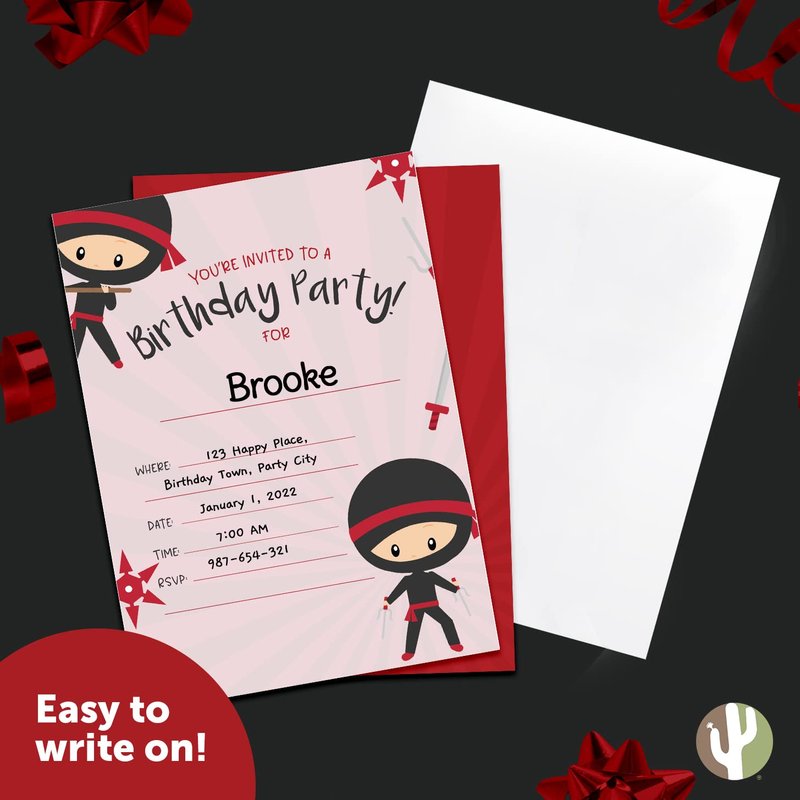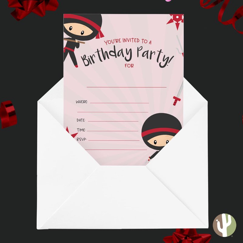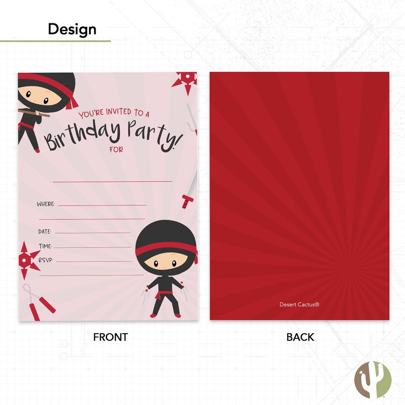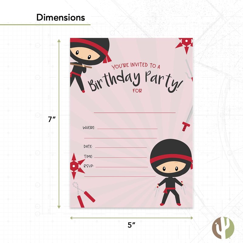 Desert Cactus Ninja Boy Style 1 Happy Birthday Invitations Invite Cards (10 Count) With Envelopes Boys Girls Kids Party (10ct)