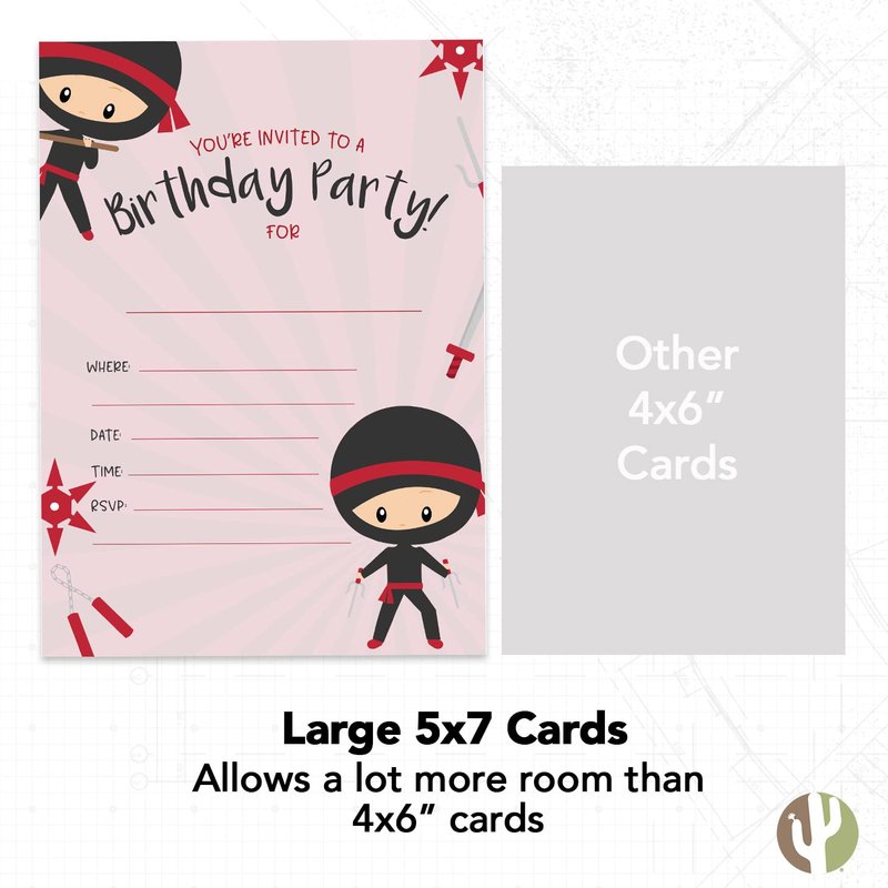 - 5 x 7 - Don’t be fooled by small invitation sizes. Our invitations measure 5 inches wide x 7 inches tall. Printed on a premium 14 point cardstock, these invitations are uncoated, so it’s easy for you to write on them. All invitations feature a design on both sides.