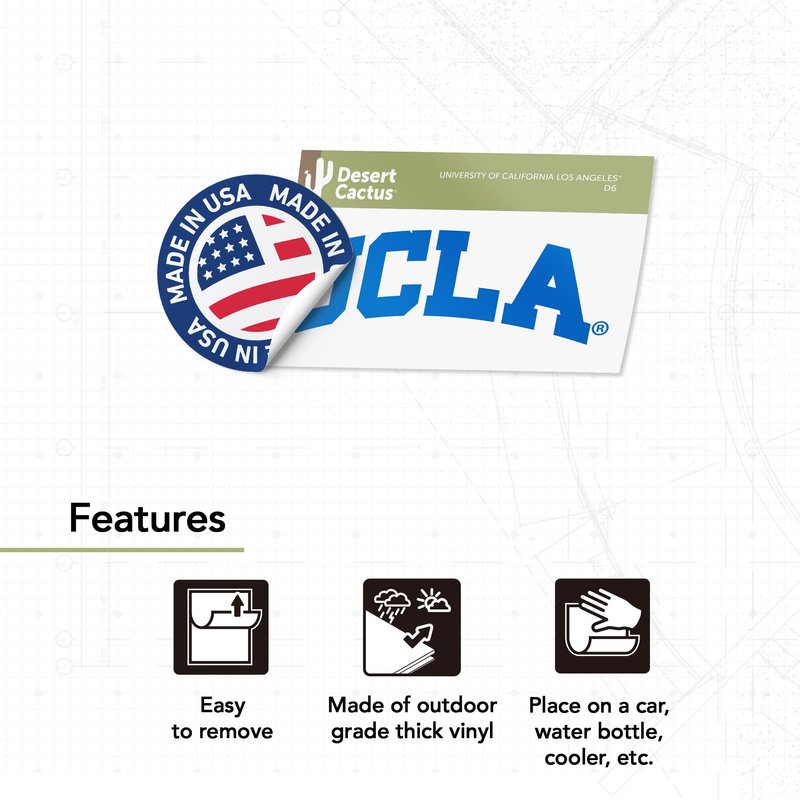 Desert Cactus University of California Los Angeles Sticker UCLA Bruins Vinyl Decal Laptop Water Bottle Car Scrapbook (IND D6)