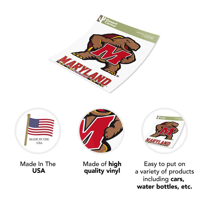 Desert Cactus University of Maryland Stickers Terrapins UMD Terps Vinyl Decal Laptop Water Bottle Car Scrapbook11.5x9 (4 Inch Set V1)