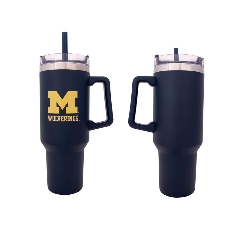 Desert Cactus University of Michigan Wolverines U of M Large Insulated Stainless Steel Handle Lid Straw Reusable Double Walled Cup Hot Cold Drinkware Laser Etched (40oz Ounce Rally Tumbler)
