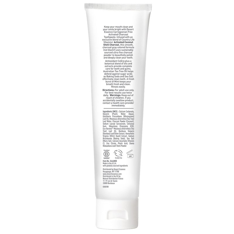 Desert Essence Activated Charcoal Toothpaste - Fresh Mint - 6.25 Ounce - Complete Oral Care - Deeply Clean - Tea Tree Oil - Baking Soda - Sea Salt - Carrageenan Free - Refreshes Breathe