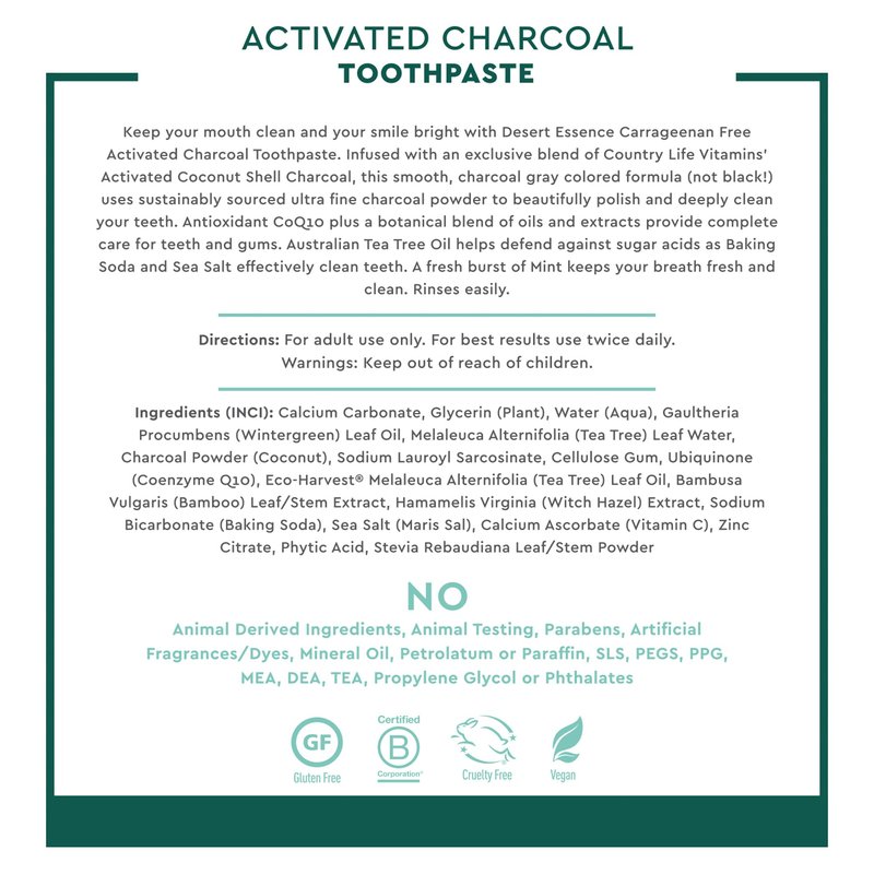 - Exclusively formulated with Country Life Vitamins’ Activated Coconut Shell Charcoal the smooth, charcoal-gray (not black!) formula helps to remove surface stains and beautifully polishes your pearly whites, without discoloring your mouth