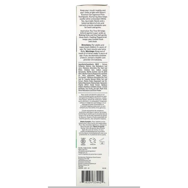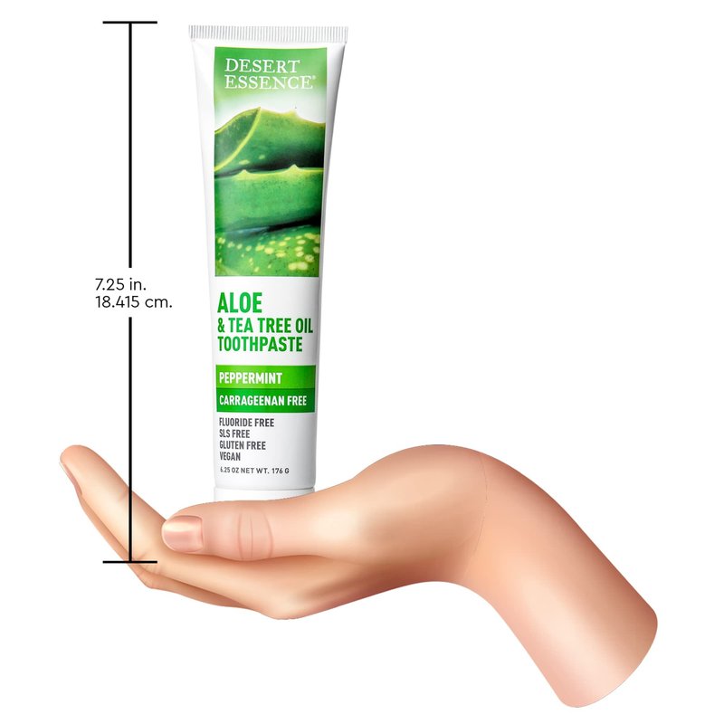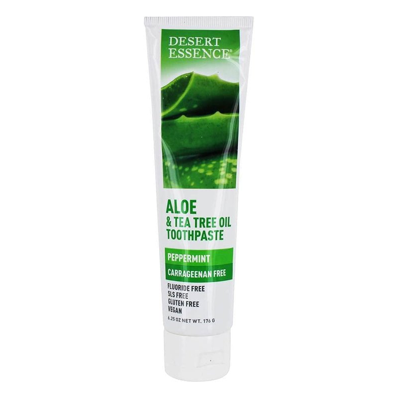 Desert Essence Aloe & Tea Tree Oil Toothpaste - Peppermint - Ideal For Sensitive Teeth & Gums - Complete Oral Care - Aloe - Tea Tree Oil - Baking Soda - Refreshes Breathe - Carrageenan Free