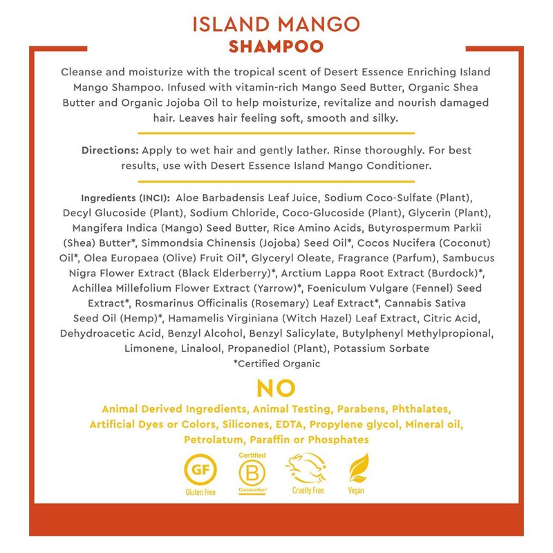 - BUNDLE SET - Includes one 8 fl. oz. bottle of Desert Essence Mango Island Shampoo & one 8 fl. oz. bottle of Desert Essence Mango Island Conditioner