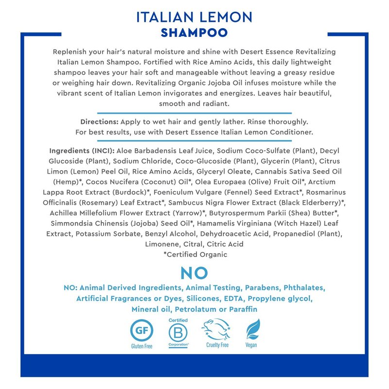 This Bundle Includes; DESERT ESSENCE ITALIAN LEMON SHAMPOO - NEW! Deep clean