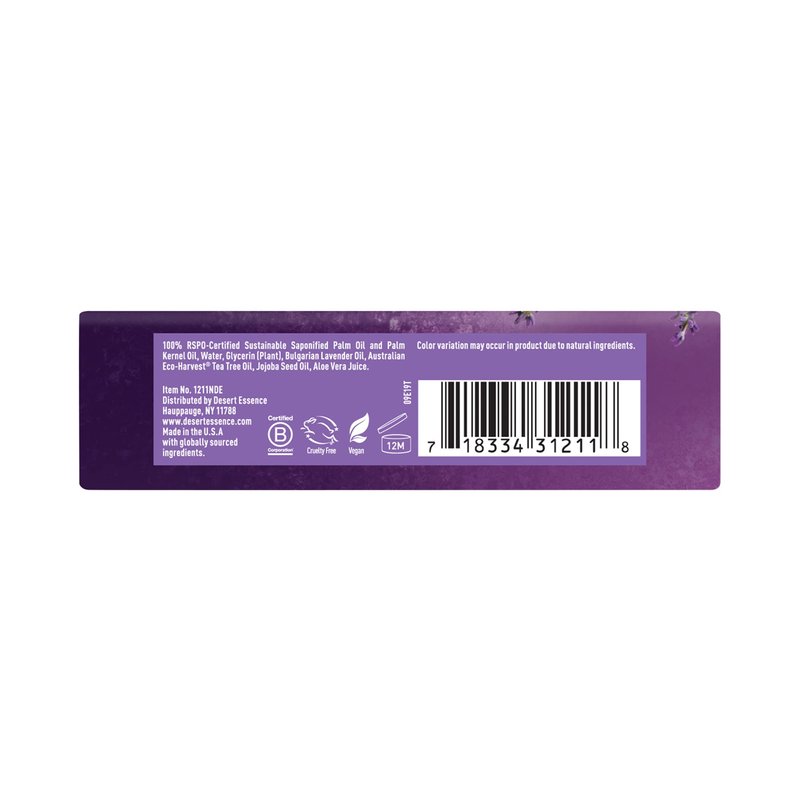 Desert Essence Lavender Soap Bar - 5 Oz - Promotes Cell Regeneration - Refreshing Rich Scent - Tea Tree Oil - Aloe Vera - Jojoba & Palm Oil - Cleanses & Soothes Skin