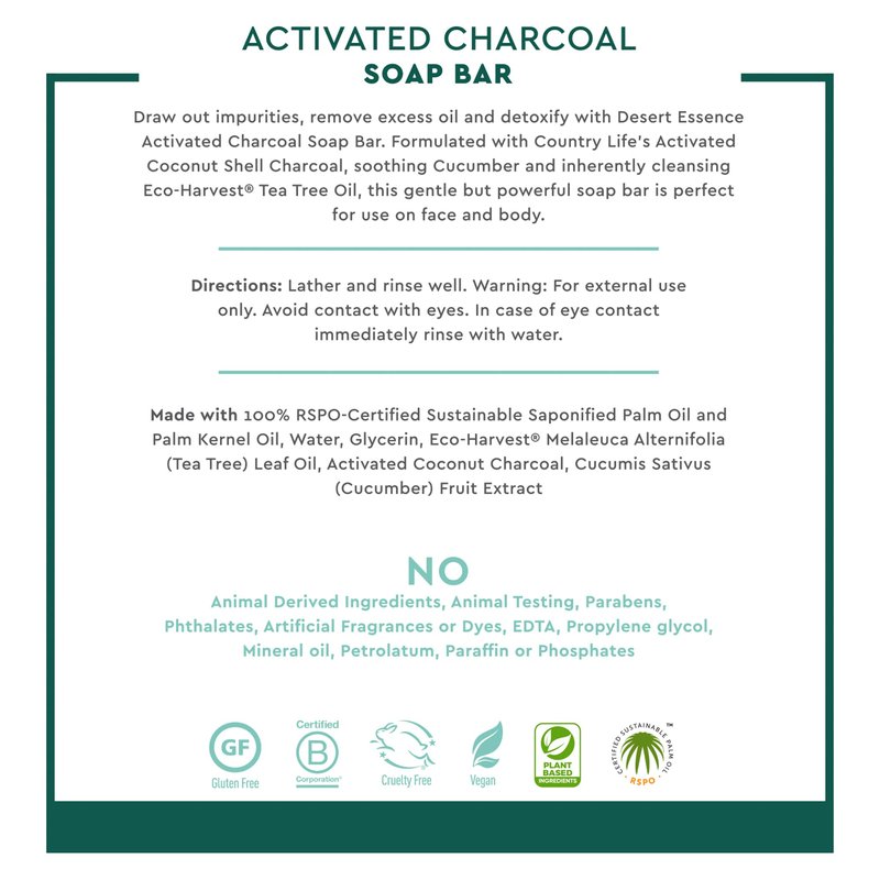 Desert Essence Activated Charcoal Soap Bar is specially formulated to