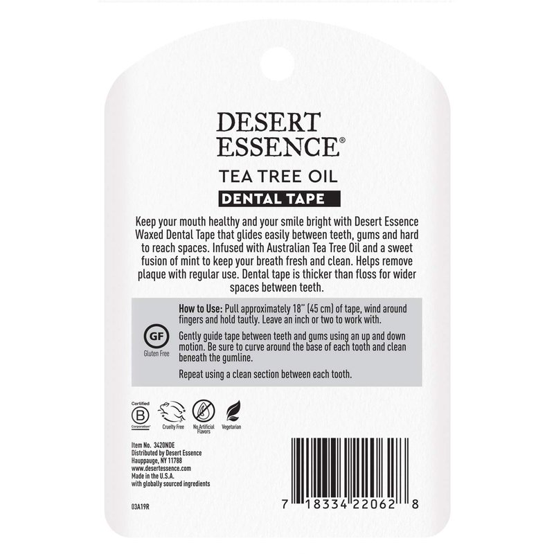 Desert Essence Tea Tree Oil Dental Tape - 30 Yards - Pack of 24 - Naturally Waxed w/ Beeswax - Thick Flossing No Shred Tape - On The Go - Removes Food Debris Buildup - Cruelty-Free Antiseptic