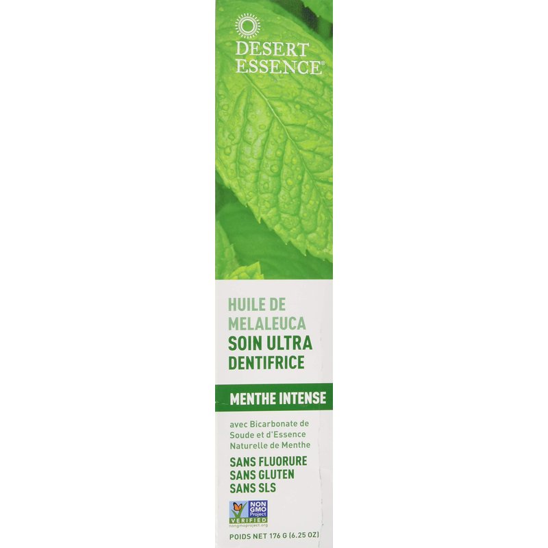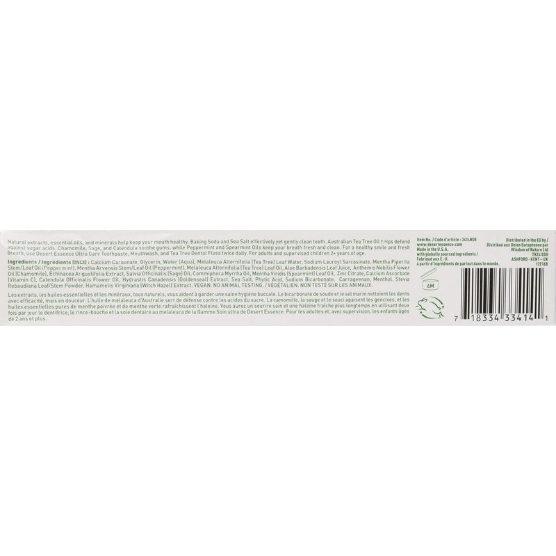 Desert Essence Tea Tree Oil Ultra Care Toothpaste 6.5 oz - Non-GMO, Gluten Free, Vegan, Cruelty Free, Fluoride Free - Pure Australian Tea Tree Oil, Baking Soda & Chamomile, Fights Bacteria & Plaque