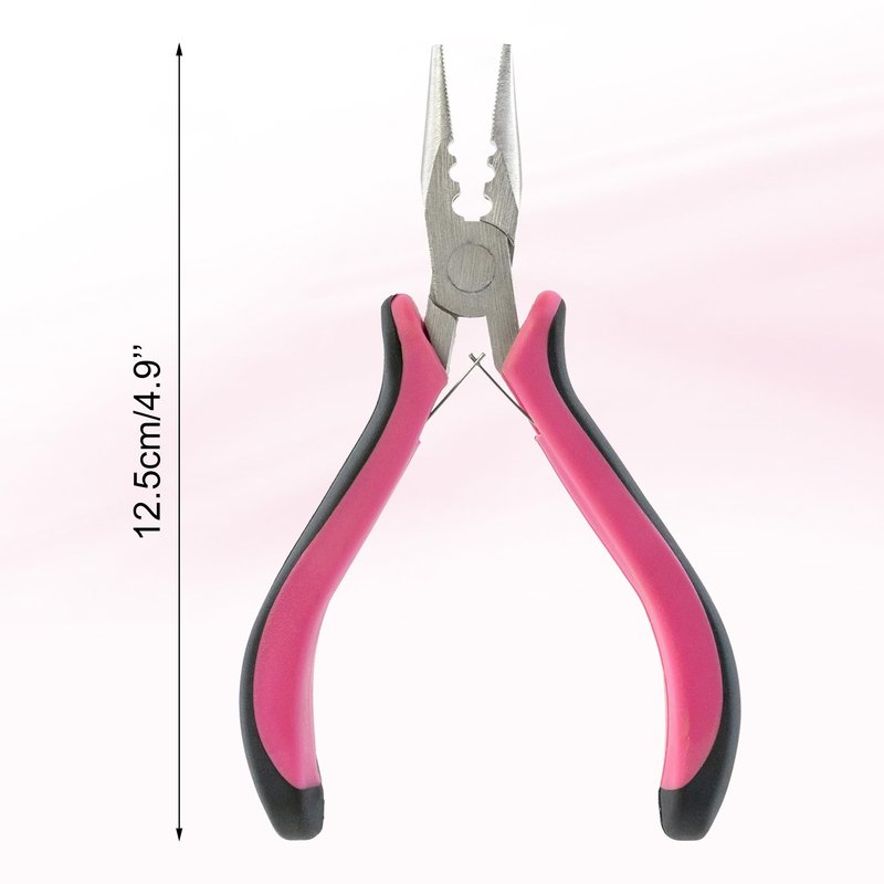 Deshionew Hair Extension Pliers 3-Hole Mini Pliers for Micro and Nano Ring Hair Extensions Opener and Removal Tool (Pink)