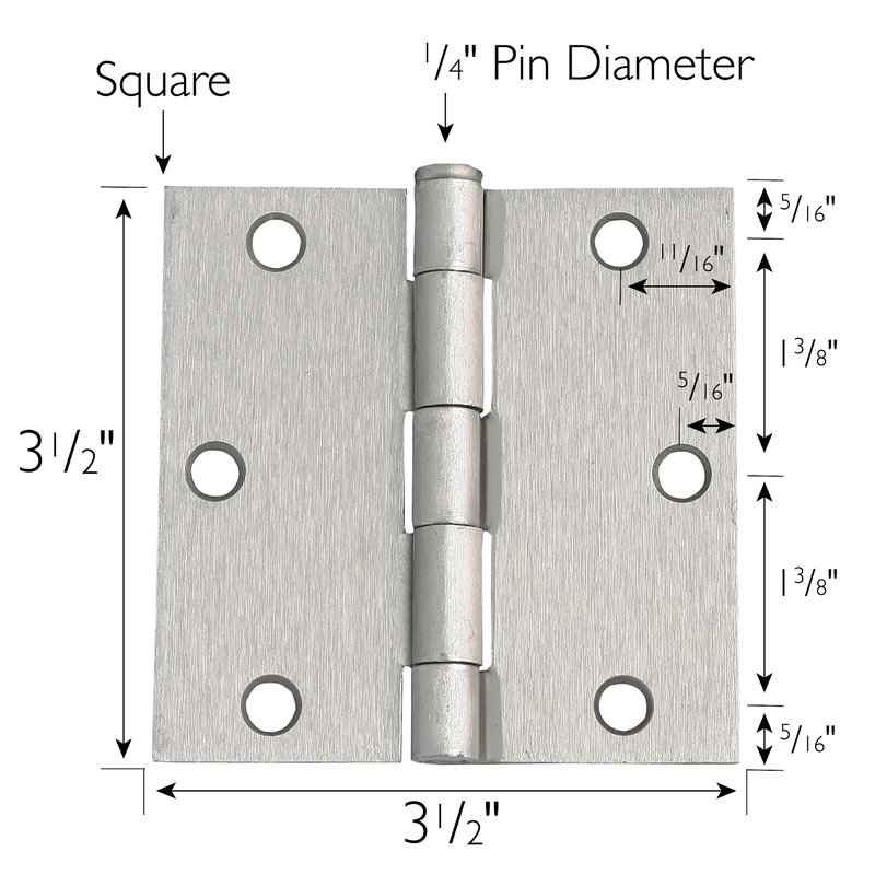 Design House 181479 Square Corner Steel Door Hinge Door Hardware Door Hinges Interior Doors, 3.5" x 3.5", Satin Nickel, 3Pack
