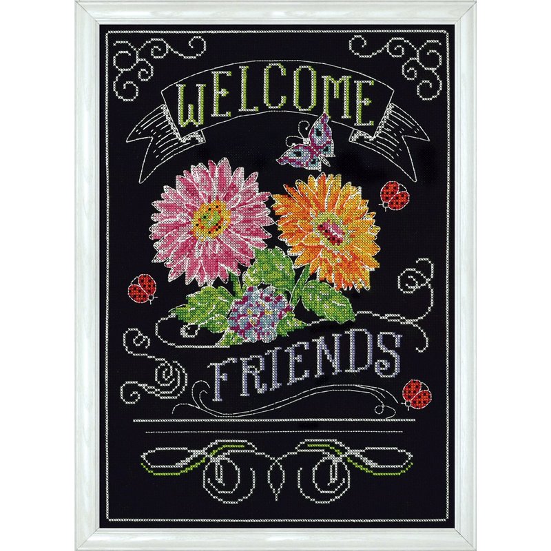 Design Works Crafts 2867 Welcome Friends Chalkboard Counted Cross Stitch Kit, 10 by 14"