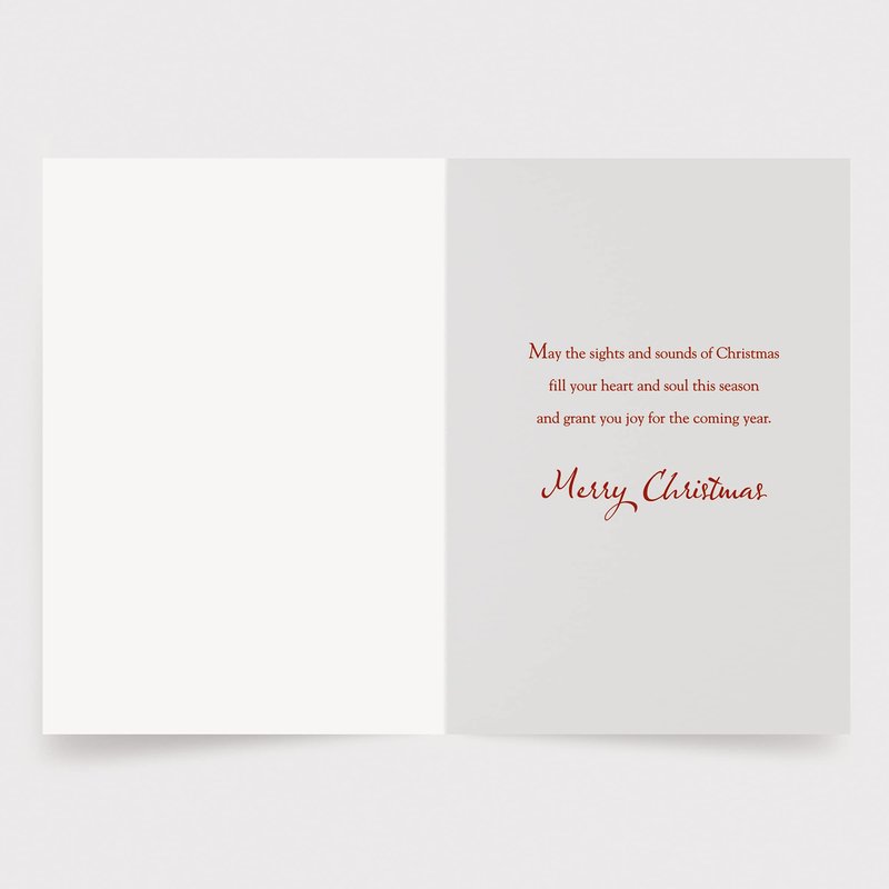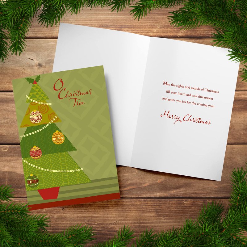 - FRONT/INSIDE MESSAGES – Front: “O Christmas Tree”. Inside: “May the sights and sounds of Christmas fill your heart and soul this season and grant you joy for the coming year. Merry Christmas
