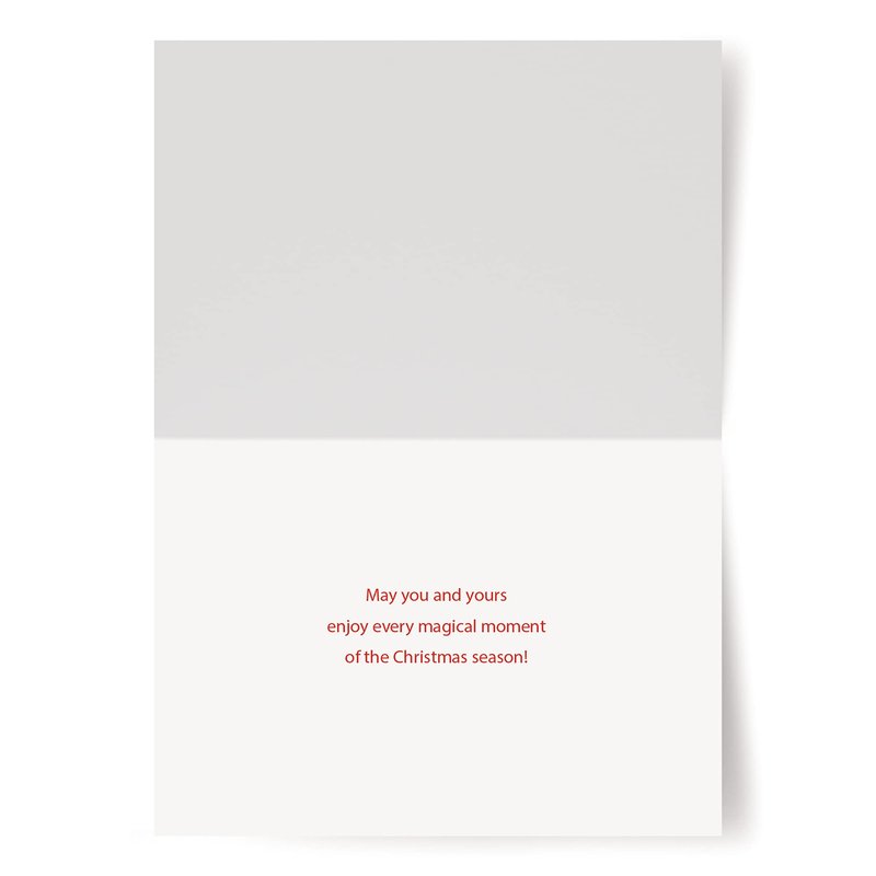- FRONT/INSIDE MESSAGES – Front : “A Christmas Message”. Inside: “May you and yours enjoy every magical moment of the Christmas season!”