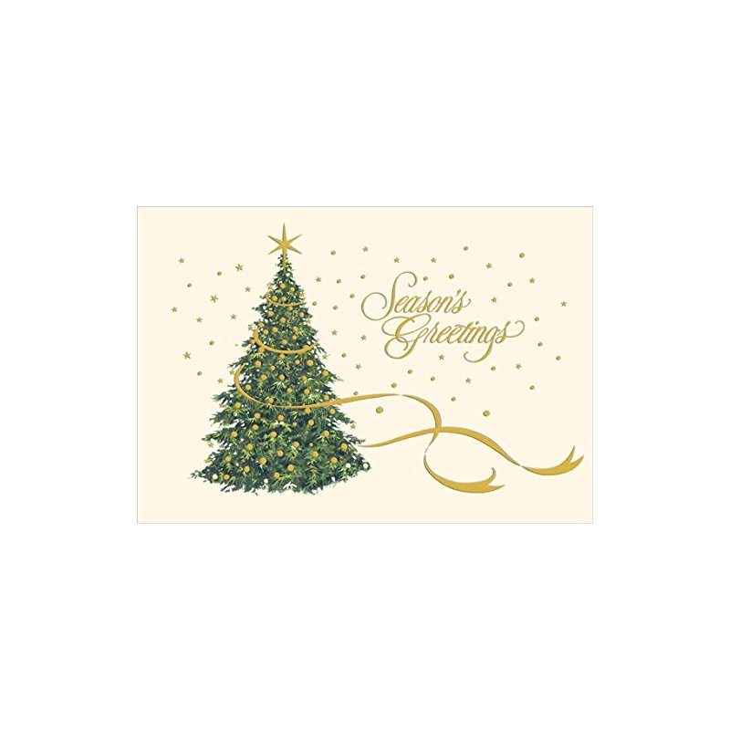 Designer Greetings Gold Foil on Christmas Tree Box of 18 Christmas Cards