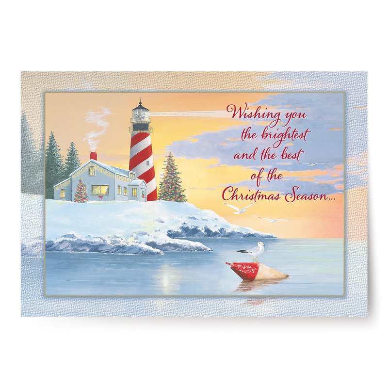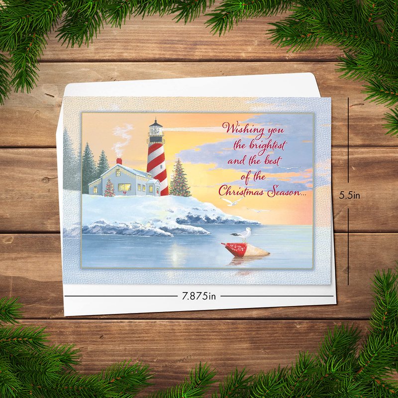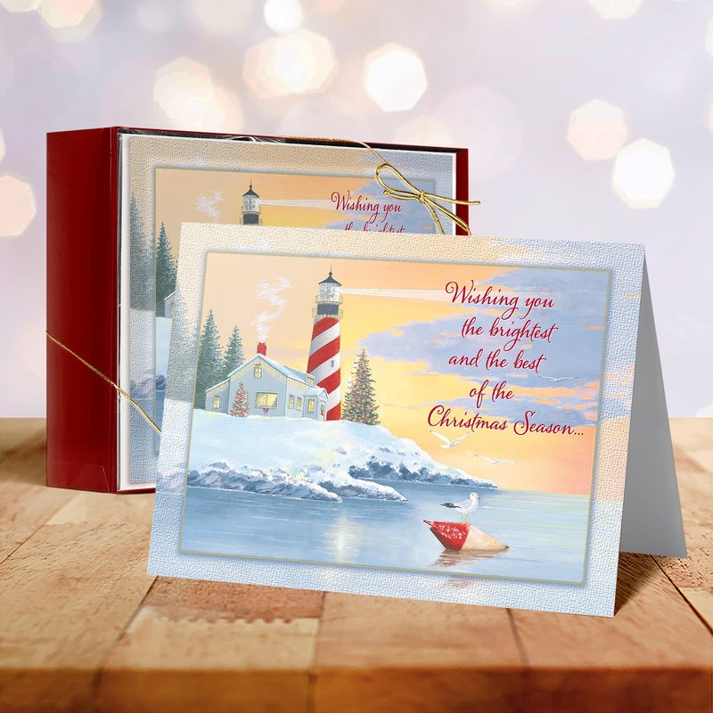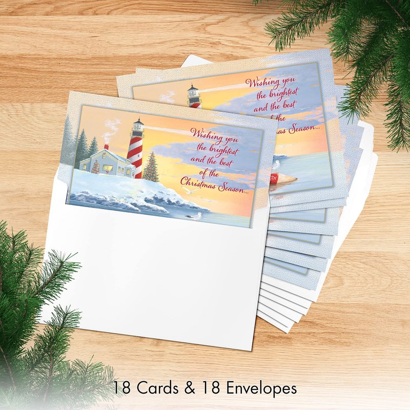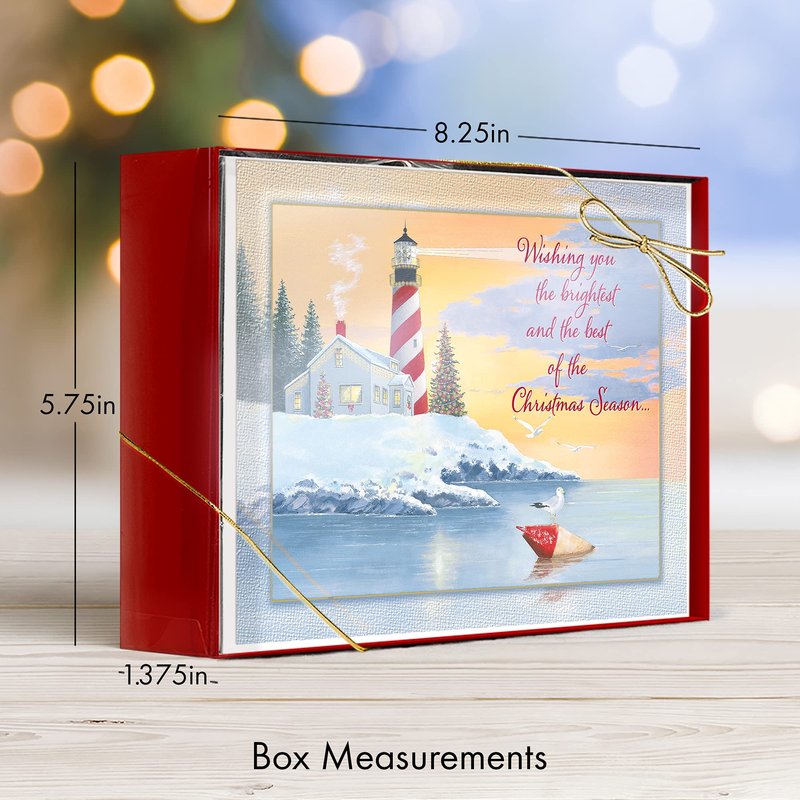 Designer Greetings Red Farm Studios Boxed Christmas Cards, Snowy Lighthouse Coastline (Box of 18 Nautical/Coastal Holiday Cards with White Envelopes), (125-00848-000)