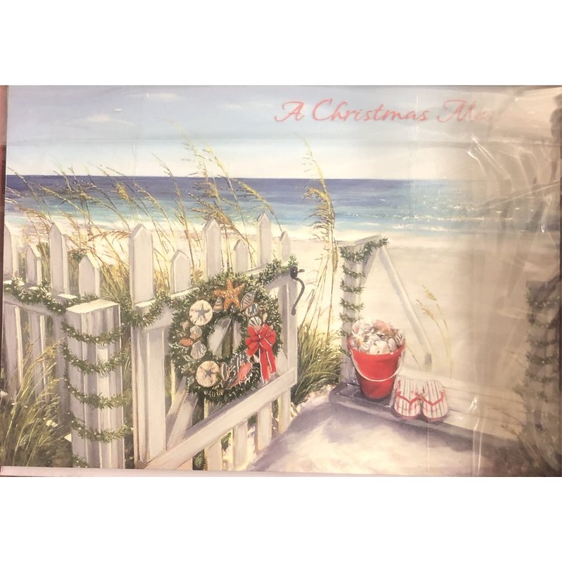 Designer Greetings Shell Wreath on White Gate Box of 18 Warm Weather Christmas Cards