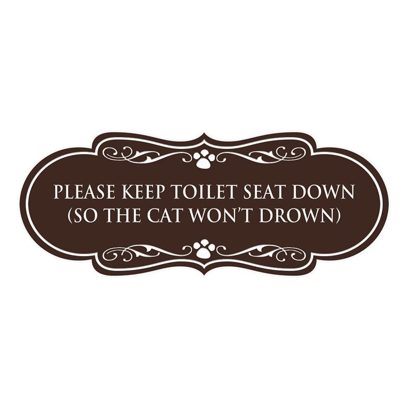 - "Please Keep Toilet Seat Down (so the cat won't drown)" Sign for your home, office, business or shop.