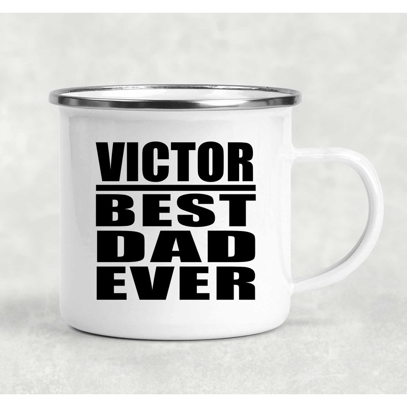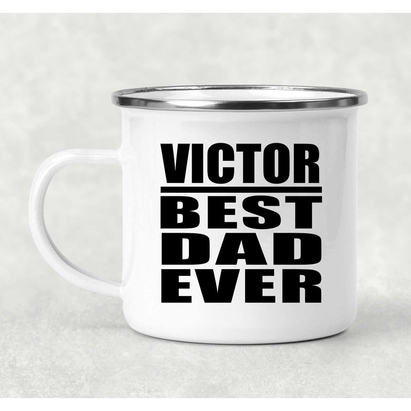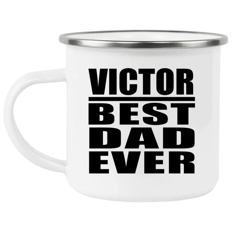 Designsify Gifts, Victor Best Dad Ever, 12oz Camping Mug Stainless Steel Enamel Tea-Cup with Handle, for Birthday Anniversary Mom Dad Parents Fathers Mothers Day Party, to Men Women Him Her Friend