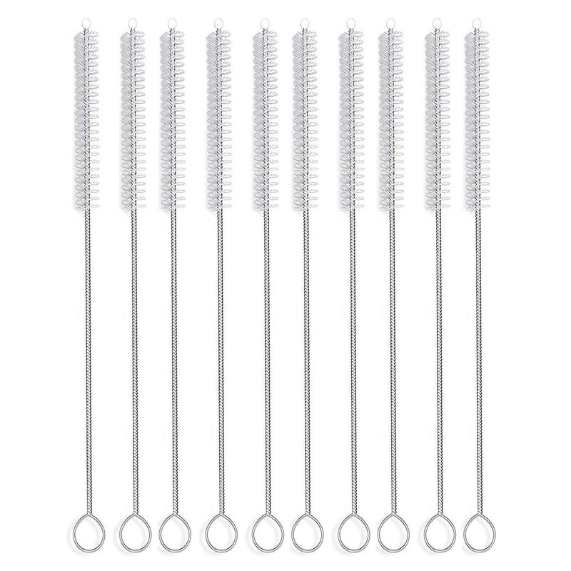 12-inch straw, long enough to make it all the way through the straw, the bristles are strong enough to clean out the gunk and you can easily rinse them off when you're done.