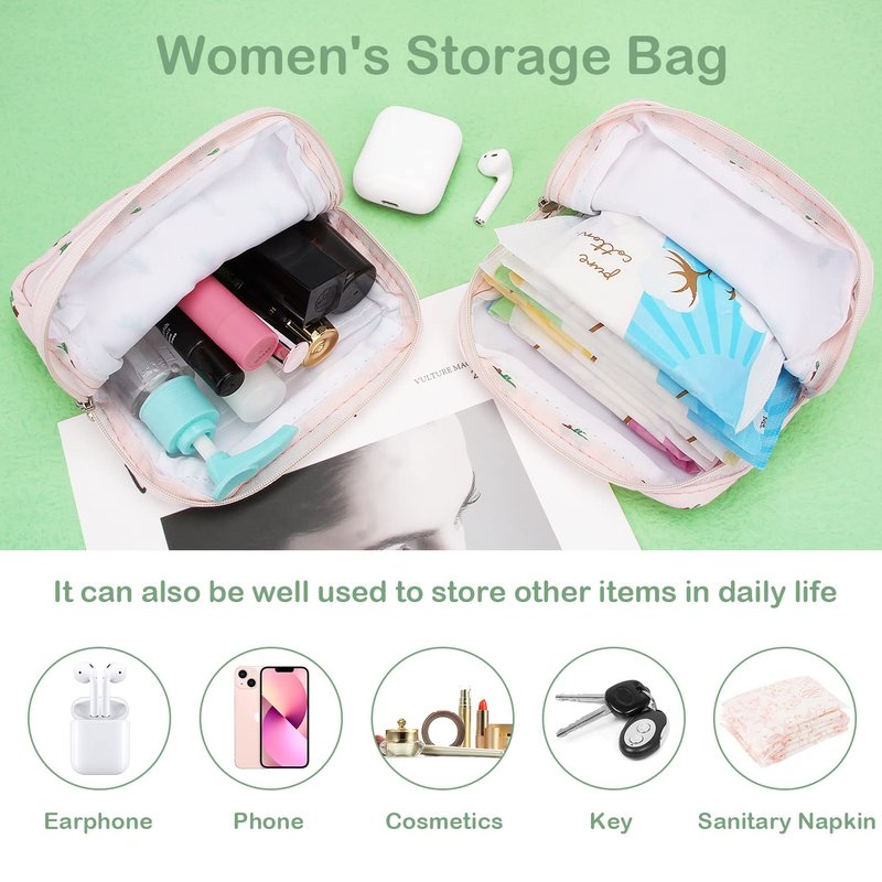 - 💕 【Multifunctional Zipper Pouch】- Our women's storage bag can not only store feminine products but also store little items such as lip balms, lipsticks, cosmetics, mini mirrors, jewelry, keys, cash, credit cards, travel first aid stuff, etc.