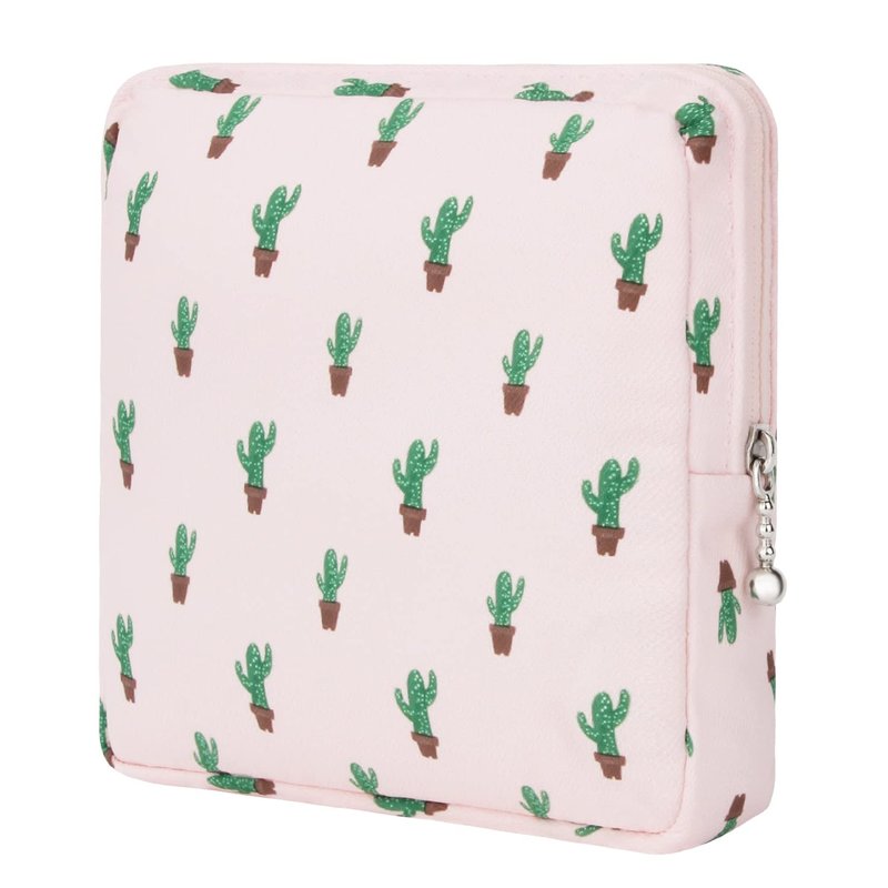 Desing Wish Sanitary Pad Storage Bag Portable Period Bag for Teen Pads/Sanitary Napkins/Small Tampons, Sanitary Napkin Storage Bag First Period Gifts for Teen Girls (Cactus)