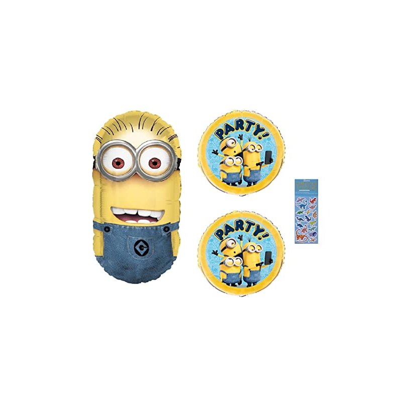 Despicable Me Birthday Party Supplies Decoration Bundle Pack includes 1 SuperShape Mylar Foil 26", 2 Mylar Balloons, 1 Dinosaur Sticker Sheet