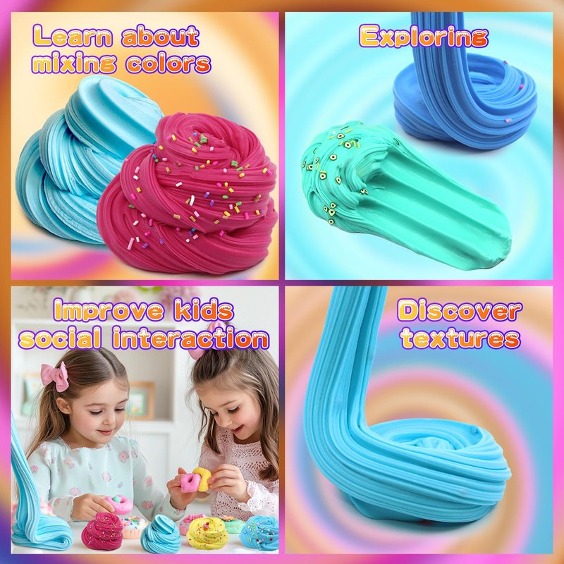 - ★Slime party favors- Playfulness is the child's nature! Your kids or your friends' kids will happy receive this butter slime kit as cool gift for Birthday, Christma, Reward.