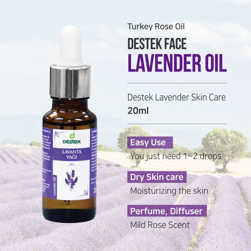Destek Turkish Lavender Essential Oil for Facial & Skin Care 20mL(0.7 Fl Oz) - Pure & Natural Ingredients that Soothes & Moisturizes Skin - Great for Face, Body, Hair & Diffuser Scents