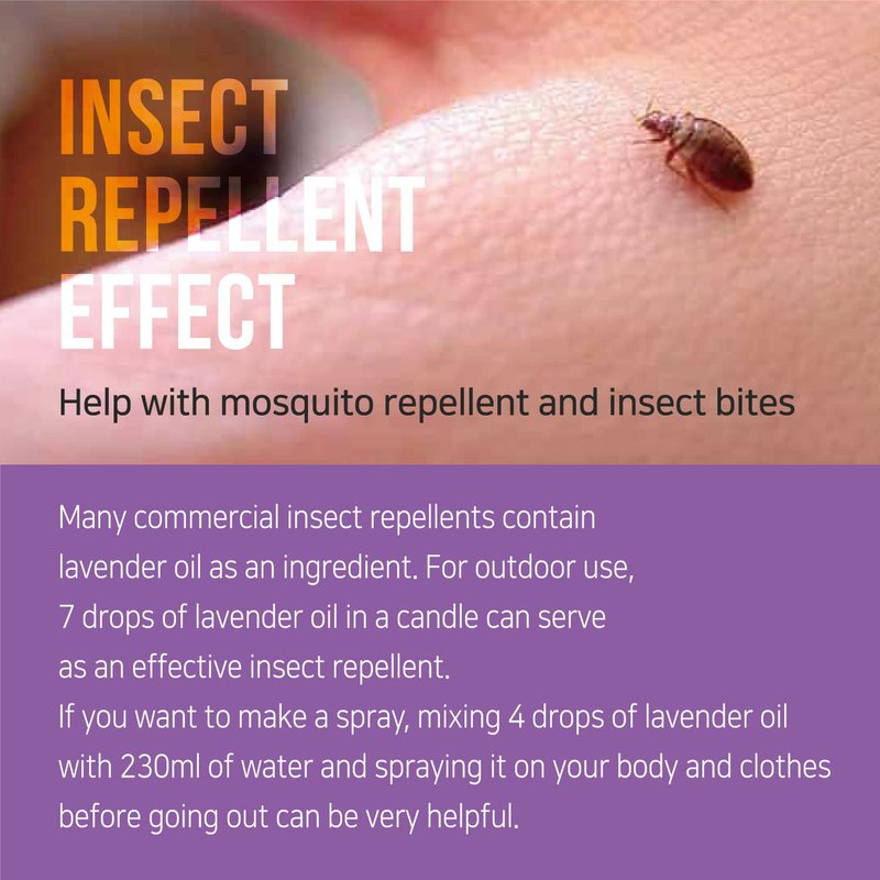 - Protect Yourself from Mosquitoes - You can use it on your skin to repel any mosquitoes. In this case use 7 drops of lavender oil in a candle to keep away those mosquitoes!