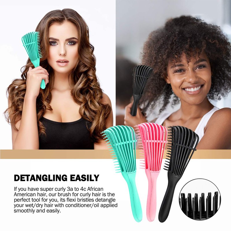- 【DETANGLING EASILY】Flexible head with 8 rows of separate nylon bristles can easily detangling matted curly, wavy, oily, kinky, thick, long and natural hair without damage. Feel less pain on scalp, saves more time in detangling your hair. Suitable for hair textured 3a to 4c kinky wavy, curly, wet, dry, thick or matted hair